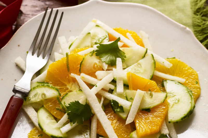 For Christmas Eve or Noche Buena, every family in Mexico is together ensalada with lettuce and beets, and a little bit of pecans, peanuts, carrot, and fruits such as orange, pineapple, and pomegranate seeds.