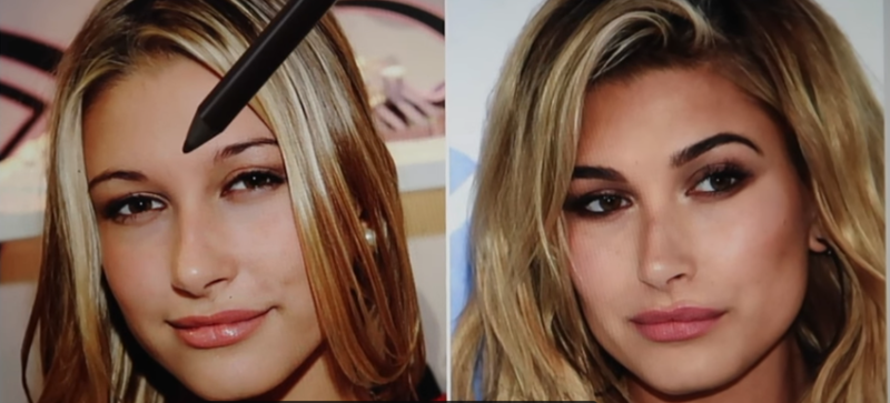 Hailey’s eyebrows had a lift according to her, which is done with either Botox or surgery. Her hairline is also different. The distance between eyebrows is different, and the hairline is smaller.